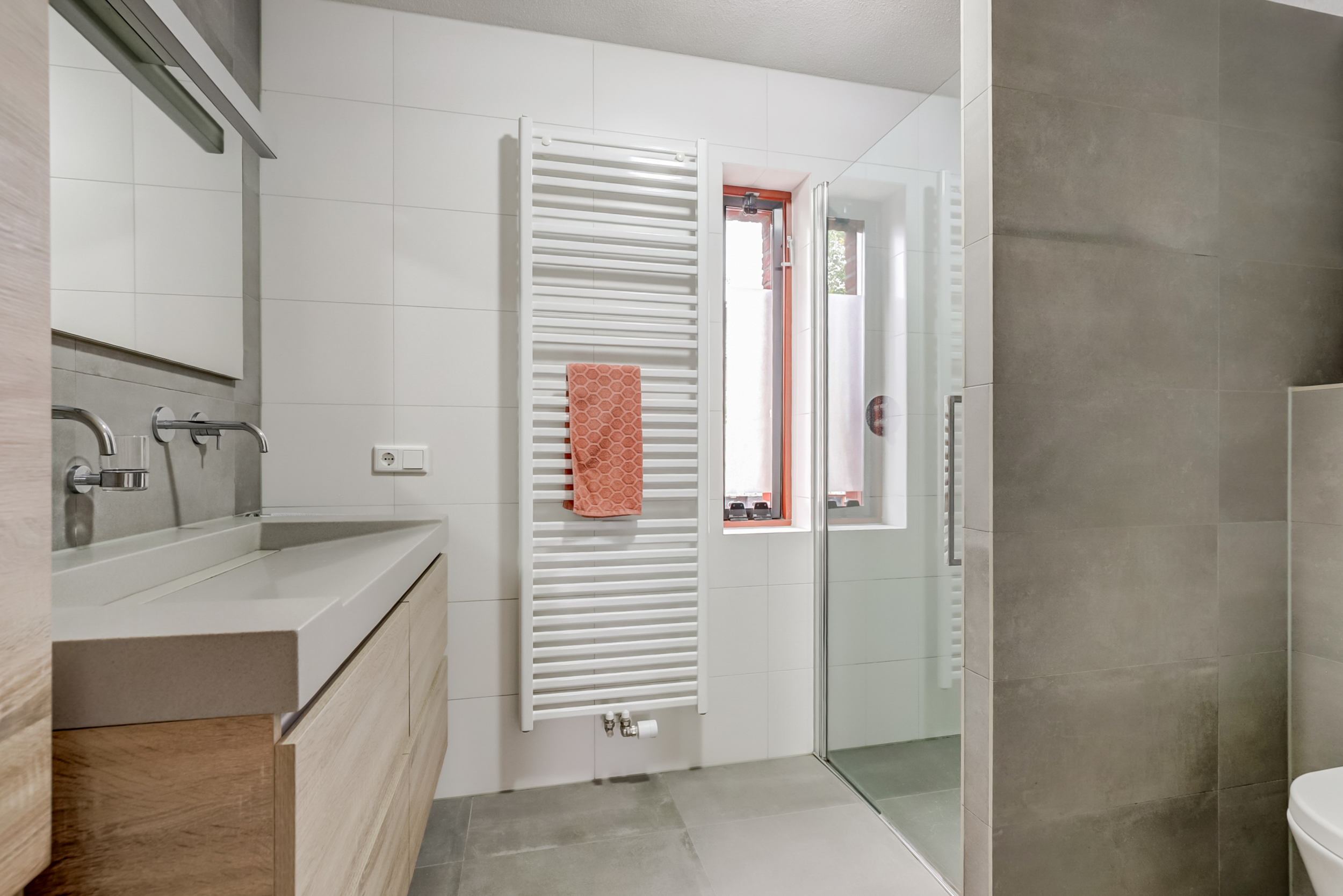 Hier zijn drie ruime slaapkamers met grote ramen die zorgen voor veel daglicht en een prettige sfeer. De badkamer is modern vernieuwd, in 2019, met inloopdouche, wastafelmeubel, hangend toilet, designradiator en verlichte spiegel. Daarnaast is er een aparte was-/technische ruimte op deze verdieping voor wasmachine en droger.